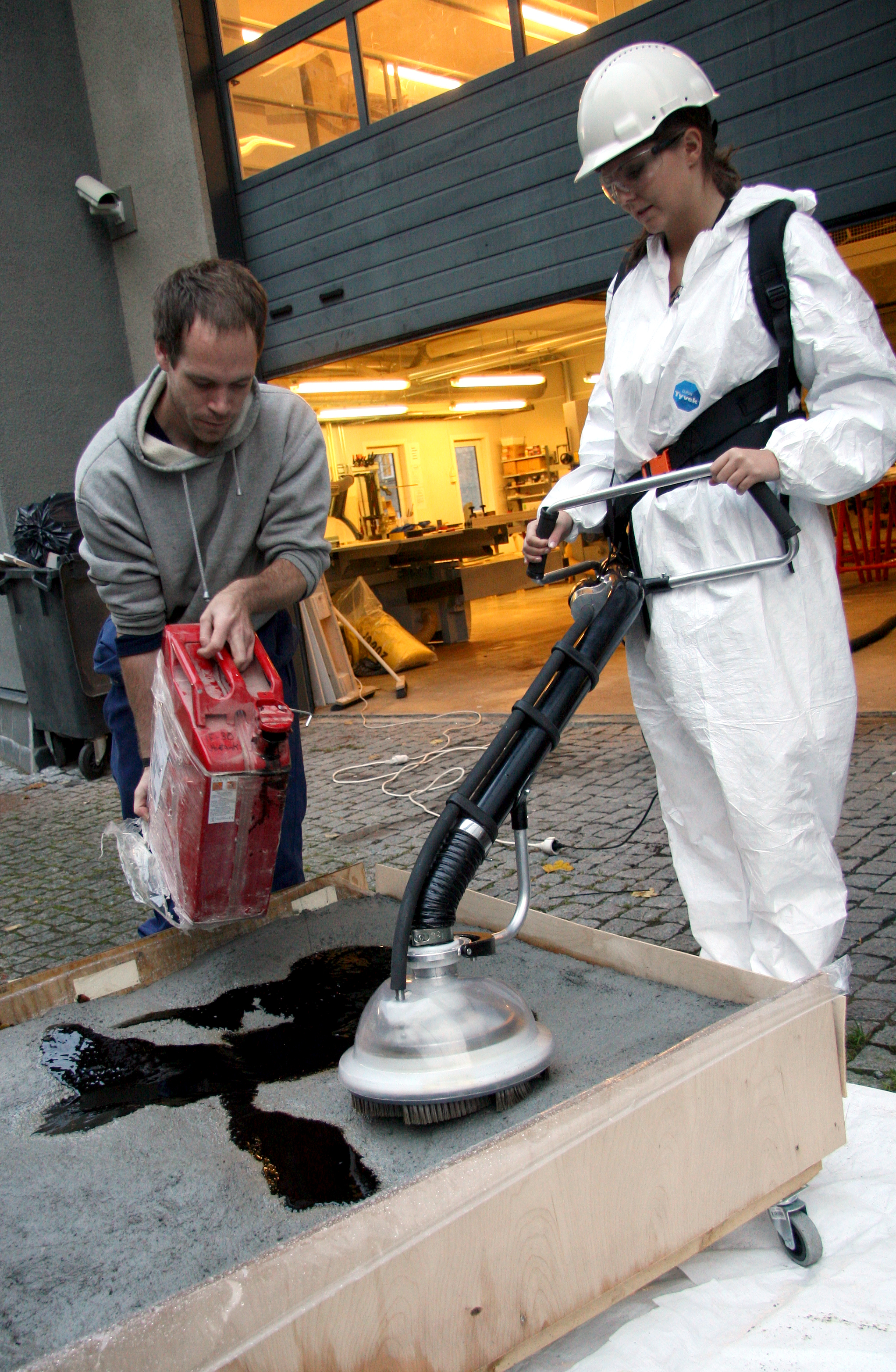But a novel approach developed at the norwegian university of science and technology ntnu uses a new kind of vacuum cleaner that blows bark or other absorbent material onto oil spills and then sucks the material up again.